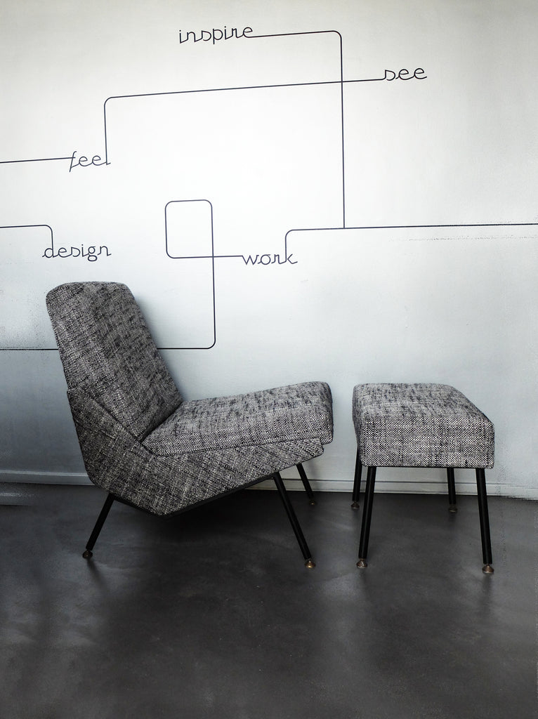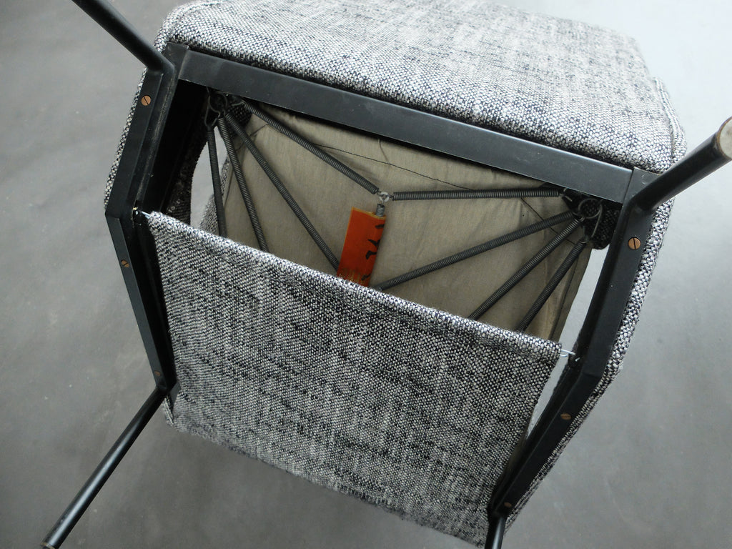 새로운 폼과 NOS(New Old Stock) 시대 패브릭으로 다시 덮개를 씌웠습니다. 오토만 크기: 53 x 33 cm - 높이 42cm 의자 높이 +/- 40cm 참고: 생산업체: Airborn, France