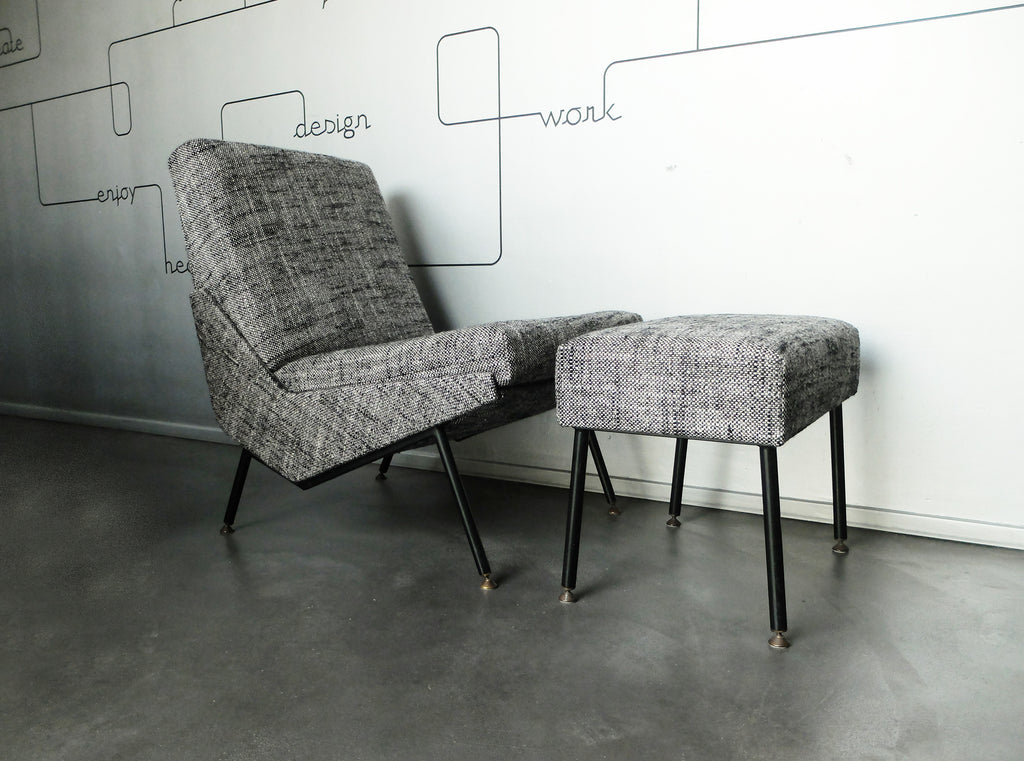 Pierre Guariche Troika slipper chair & ottoman by Airborne, France, 1960s