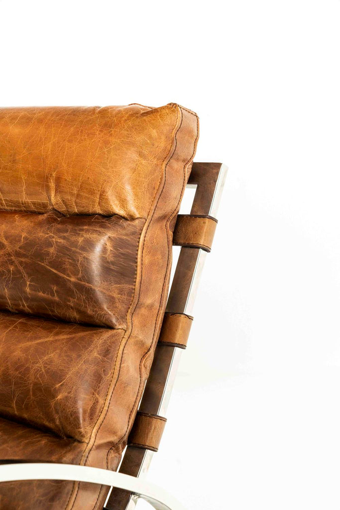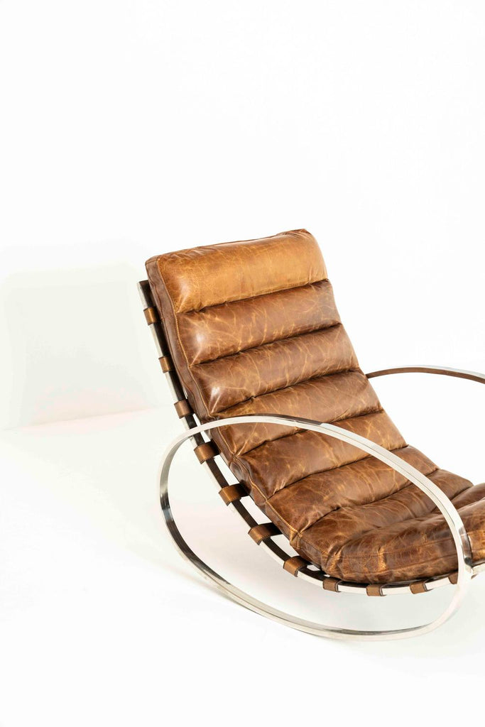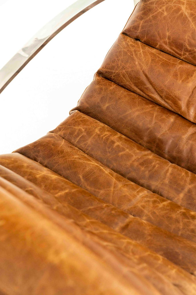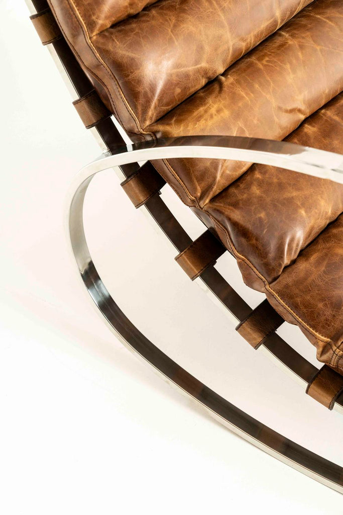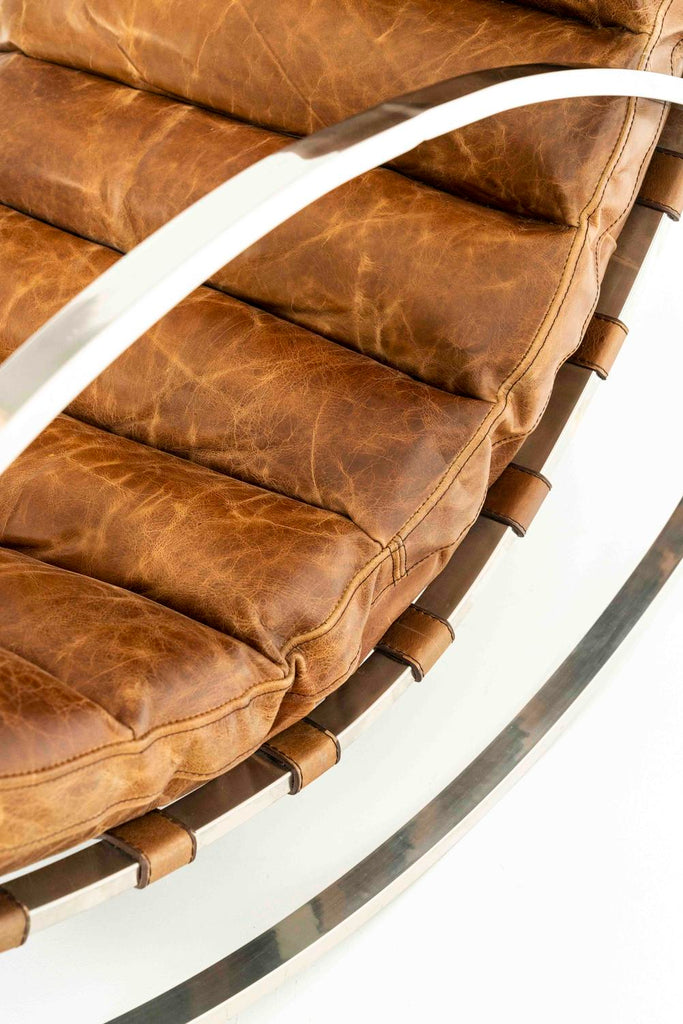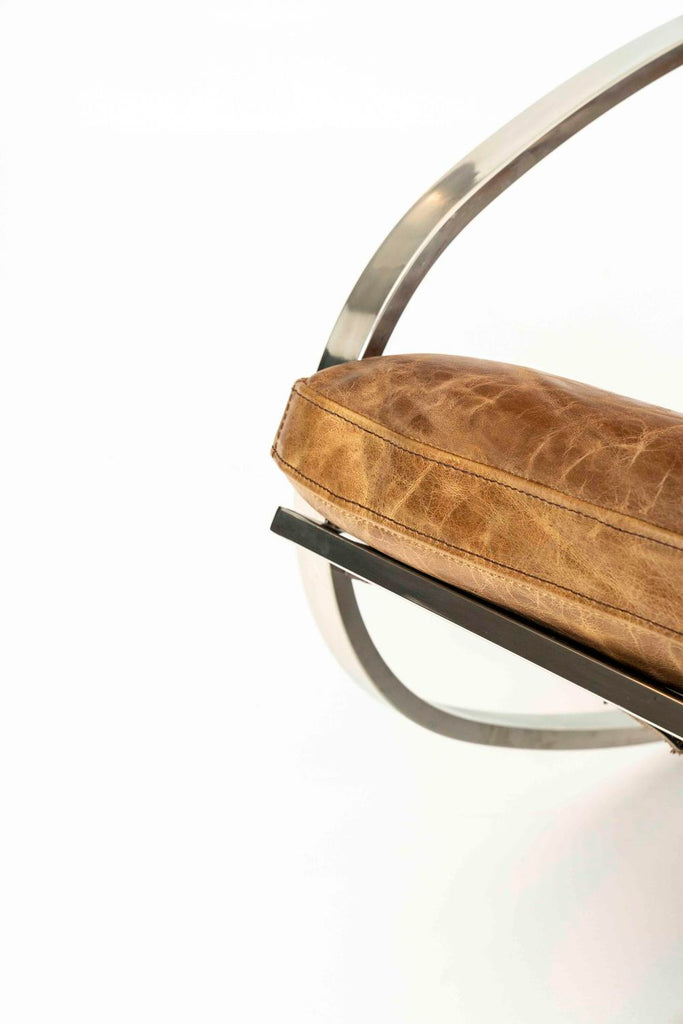 1970년대 이탈리아 브라운 가죽과 크롬 소재의 Renato Zevi의 흔들의자 'Ellipse'.