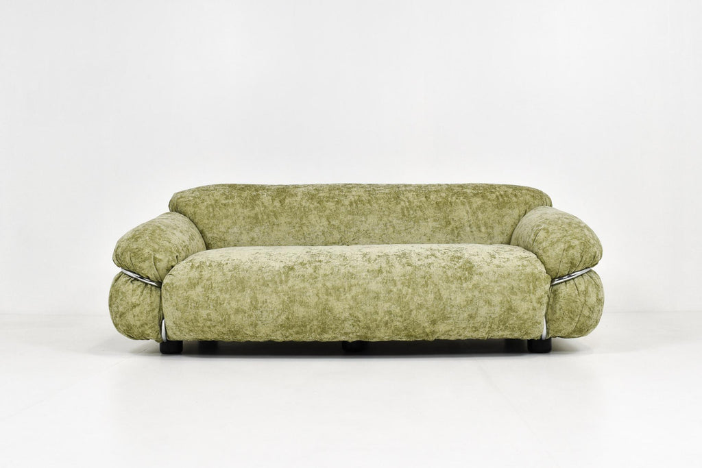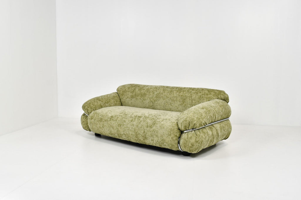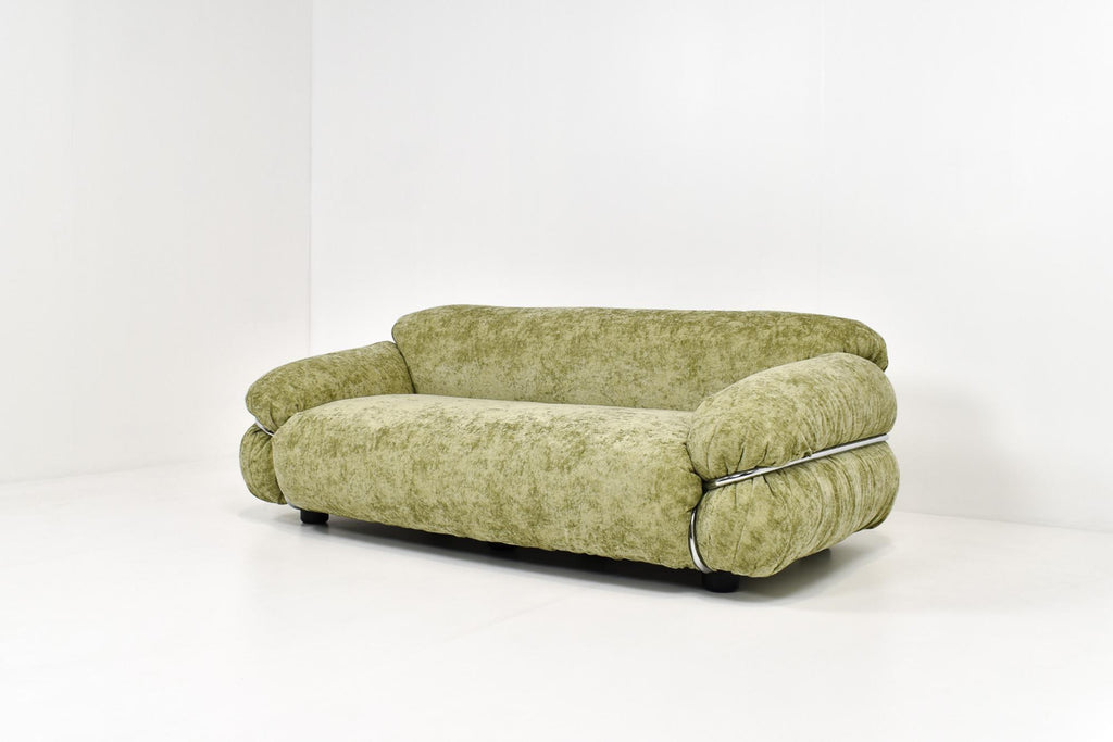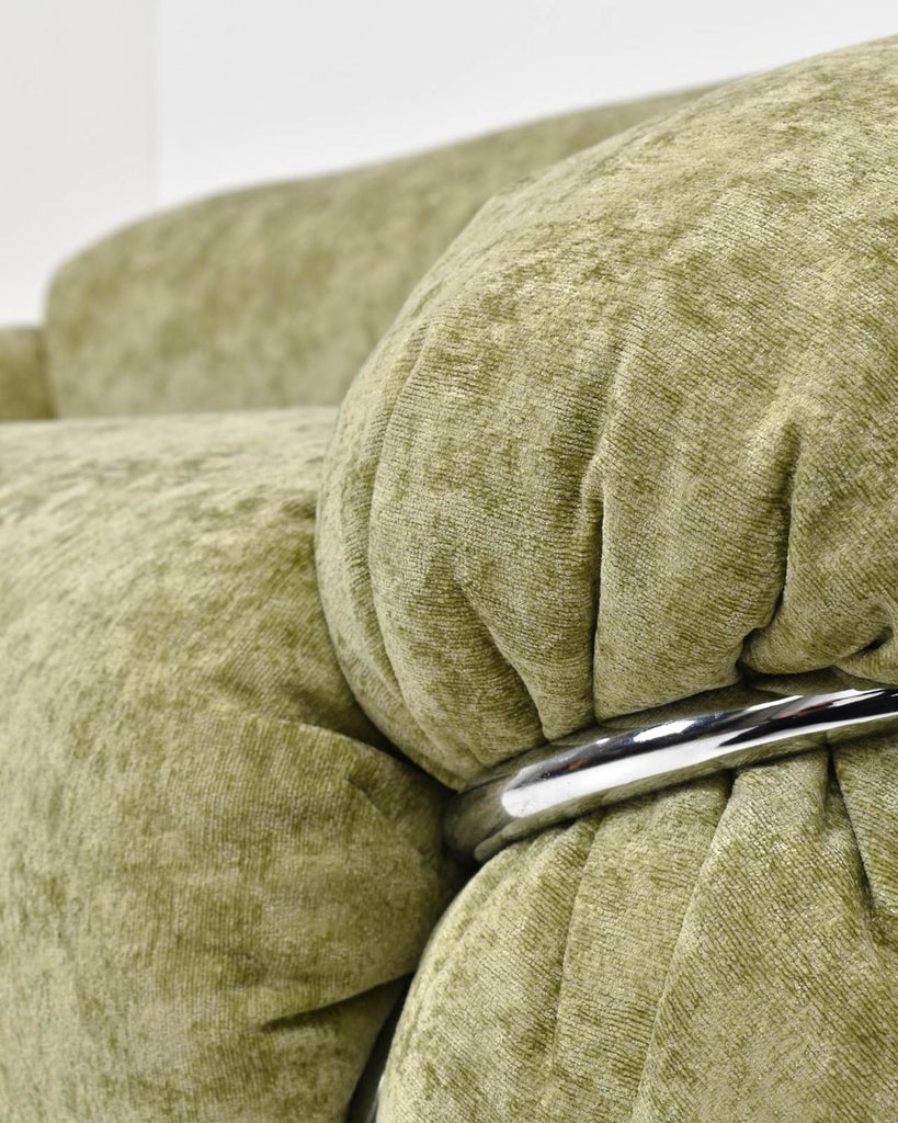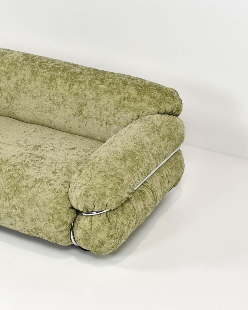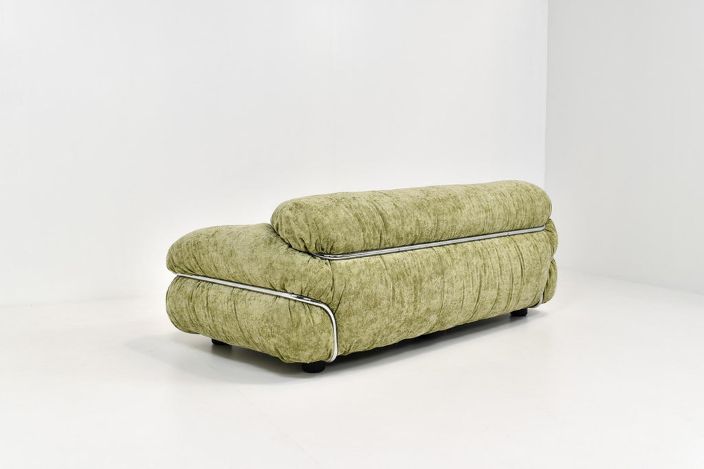 Sage Green Velvet Cassina Sesann Two Seater Sofa by Gianfranco Frattini