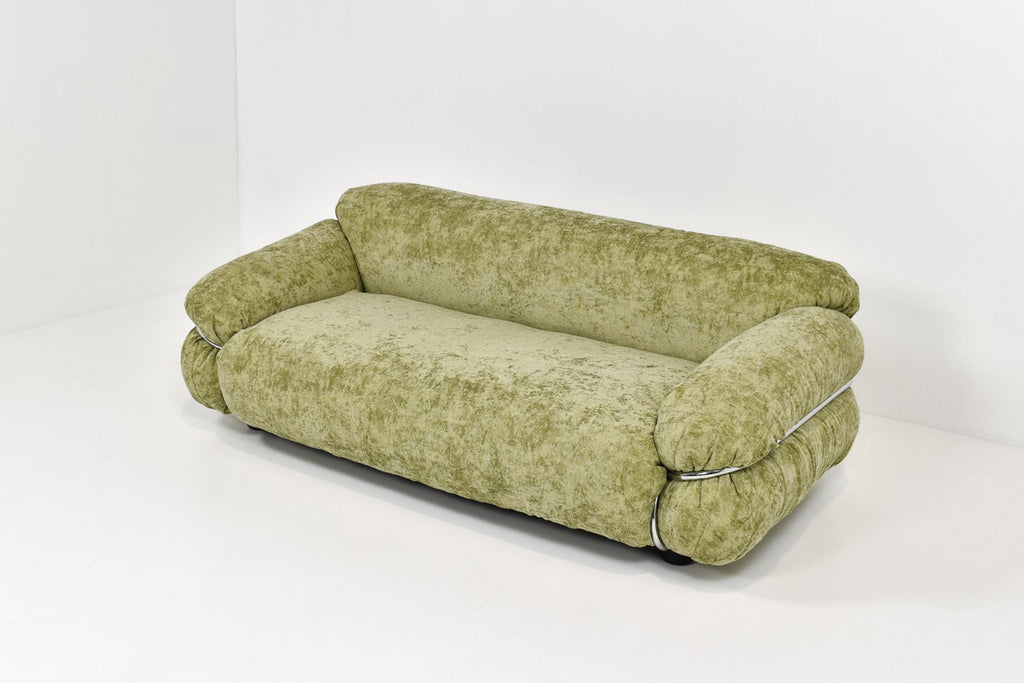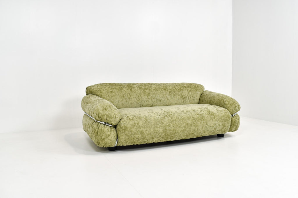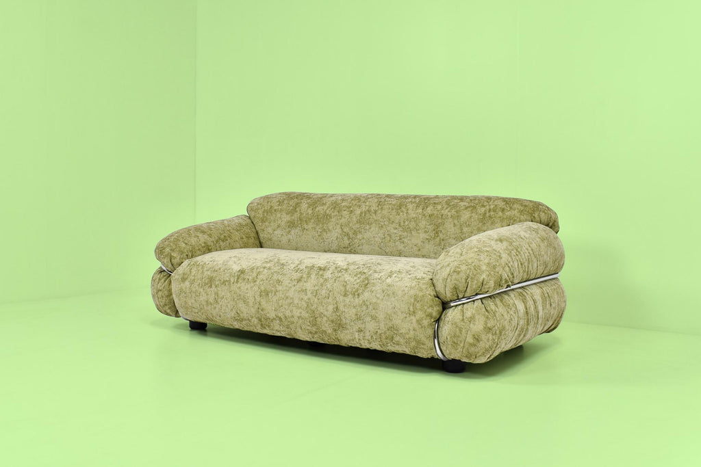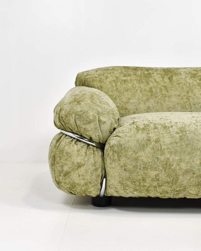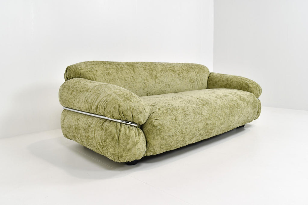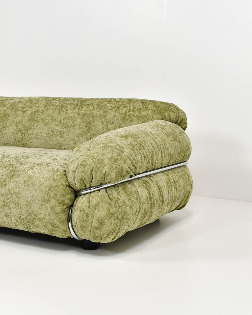 Sage Green Velvet Cassina Sesann Two Seater Sofa by Gianfranco Frattini