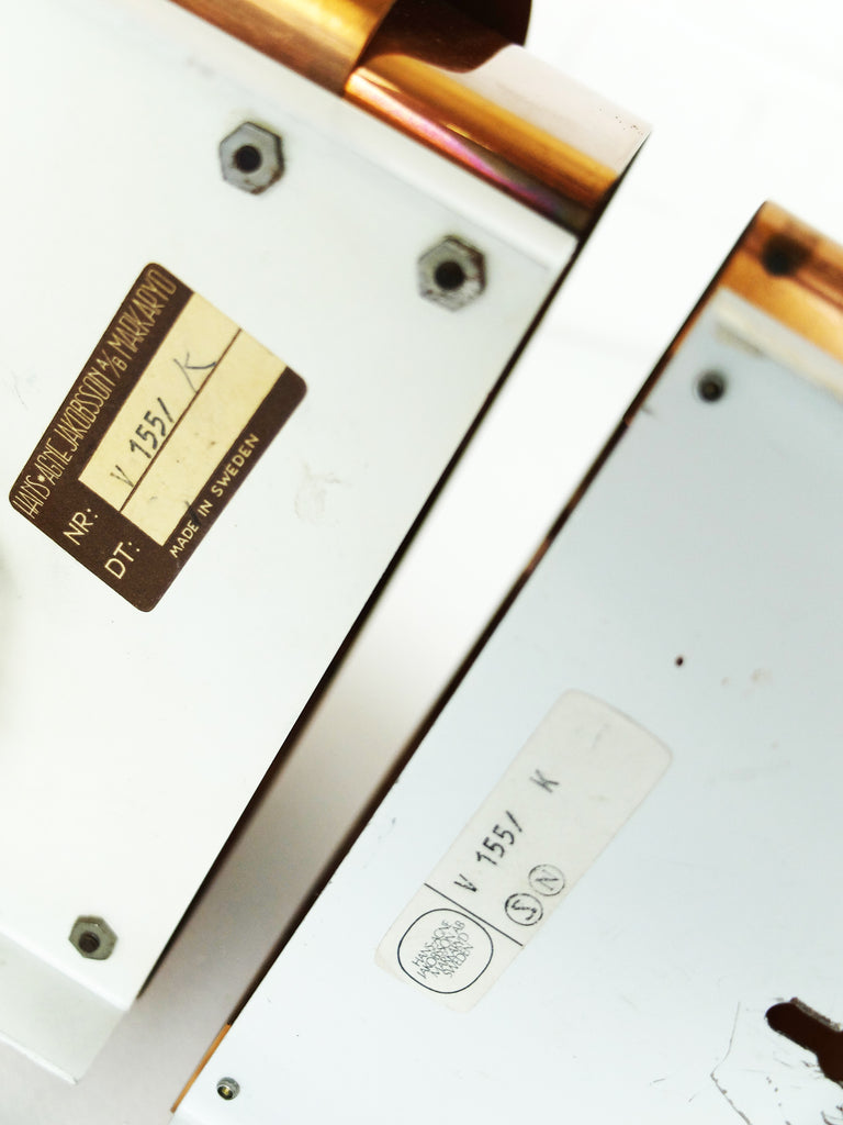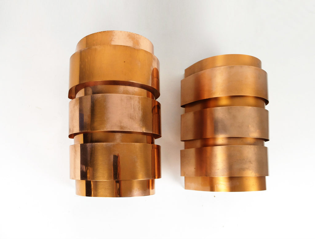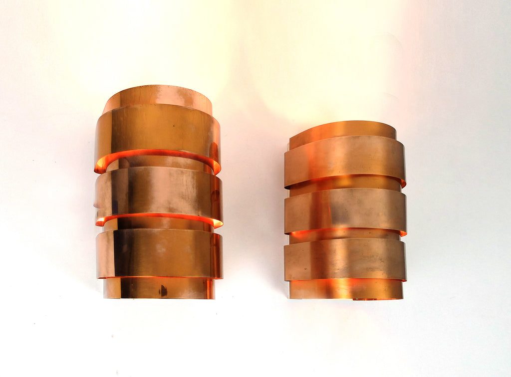 Hans-Agne Jakobsson이 디자인한 구리 마감의 V-155 벽 램프 Set.