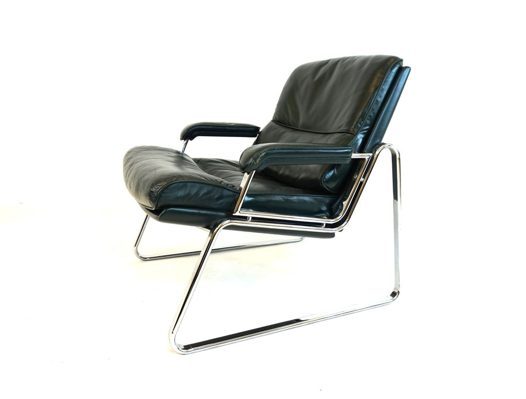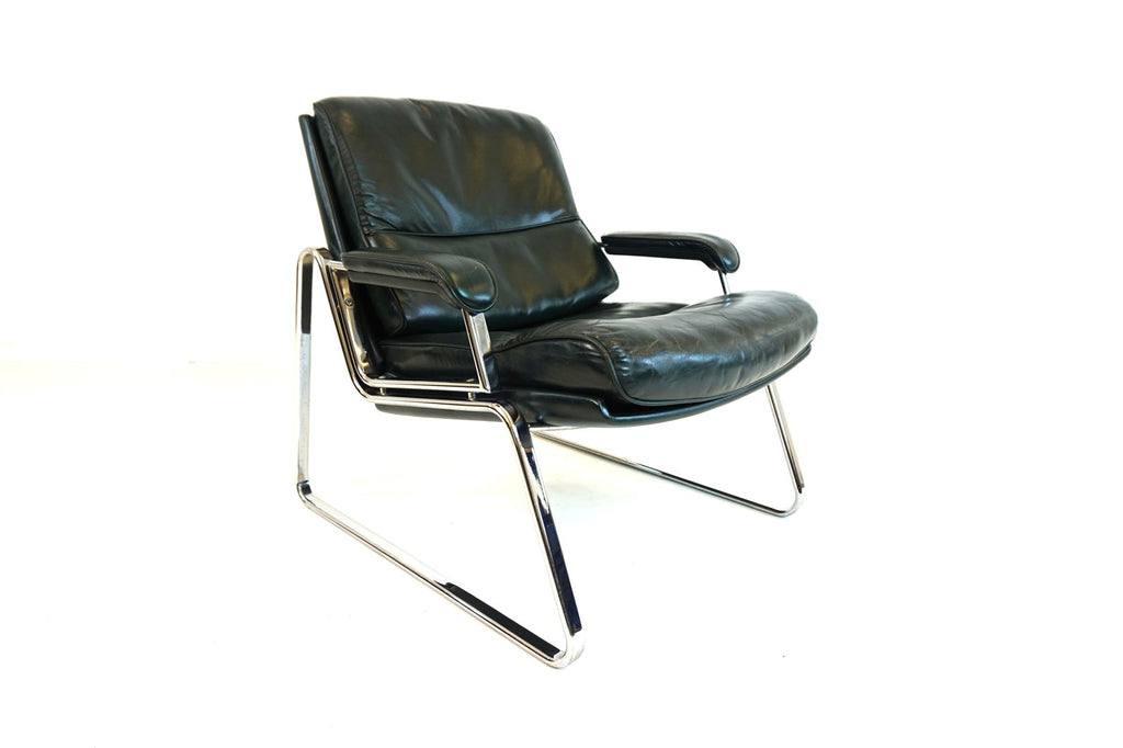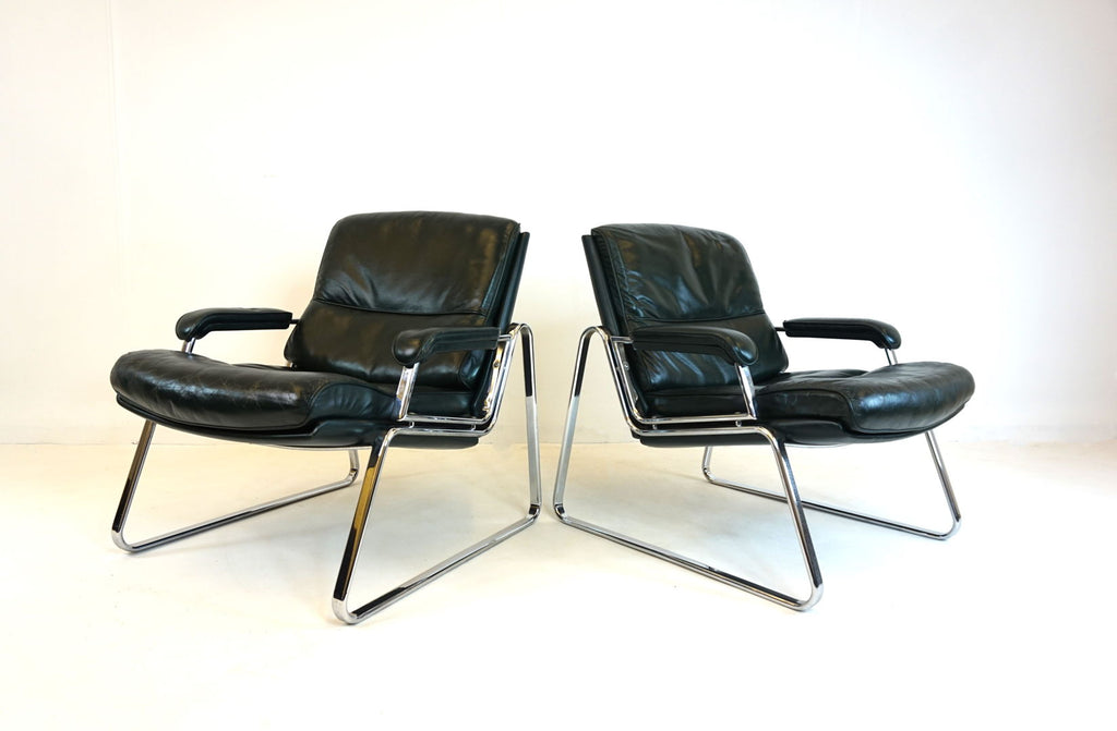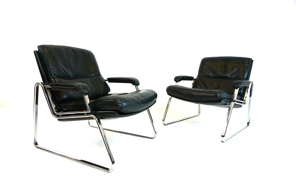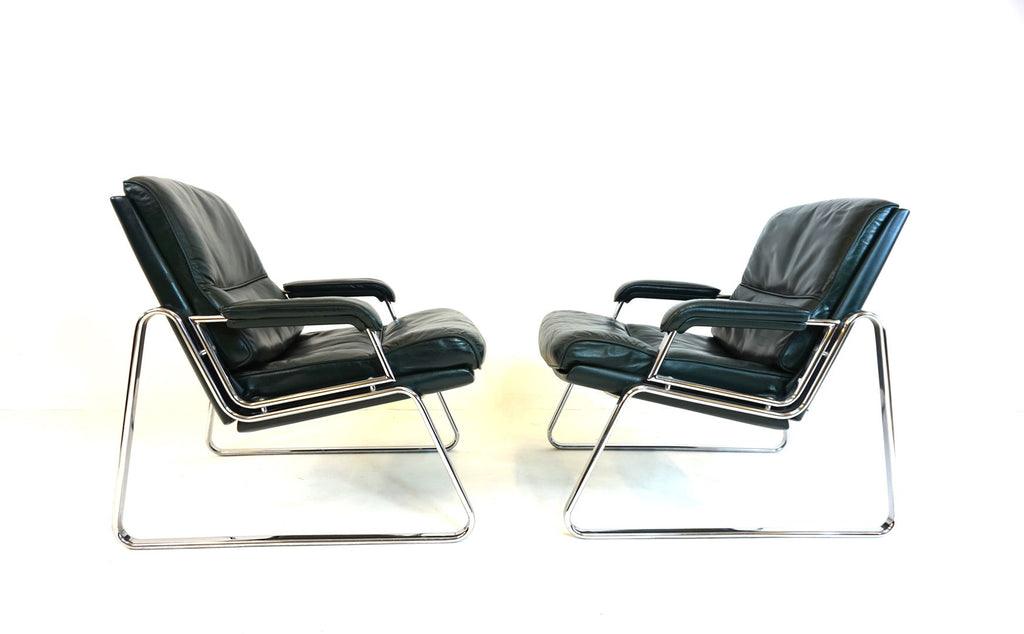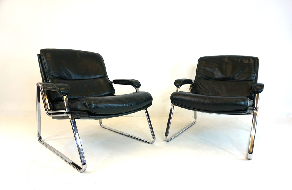 Gerd Lange designed these lounge chairs in the 1970s for the German manufacturer Drabert in a clear, very dynamic design. Gerd Lange also designed the SM 400 chair for Drabert, which is now on display in the Guggenheim Museum. Drabert was one of the most important office furniture manufacturers of the 60s and 70s, producing the highest quality office furniture.