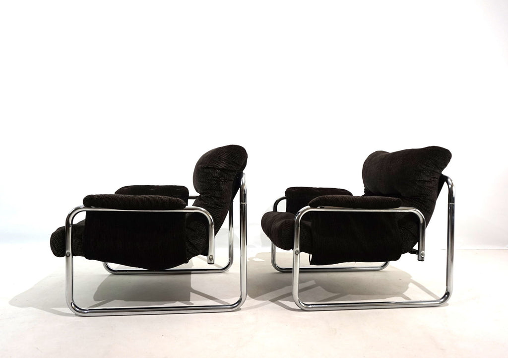 Set of 2 Herlag chrome cantilever lounge chairs by Johan Bertil Häggström
