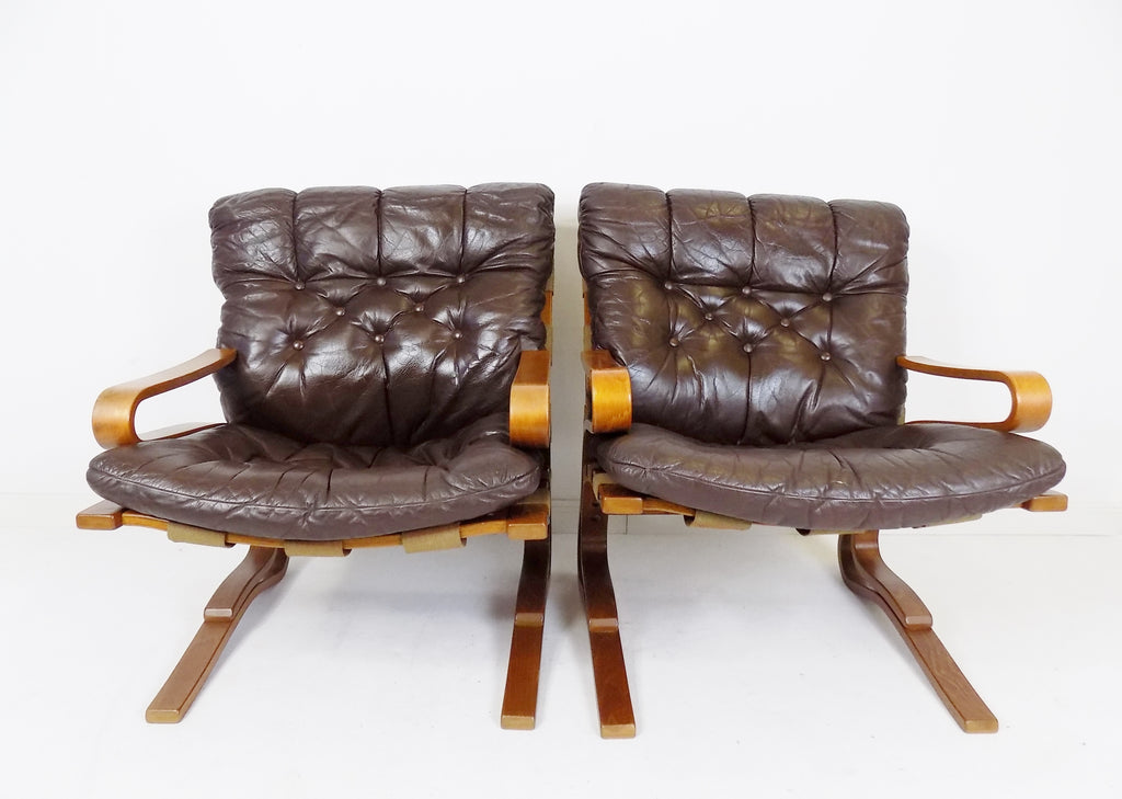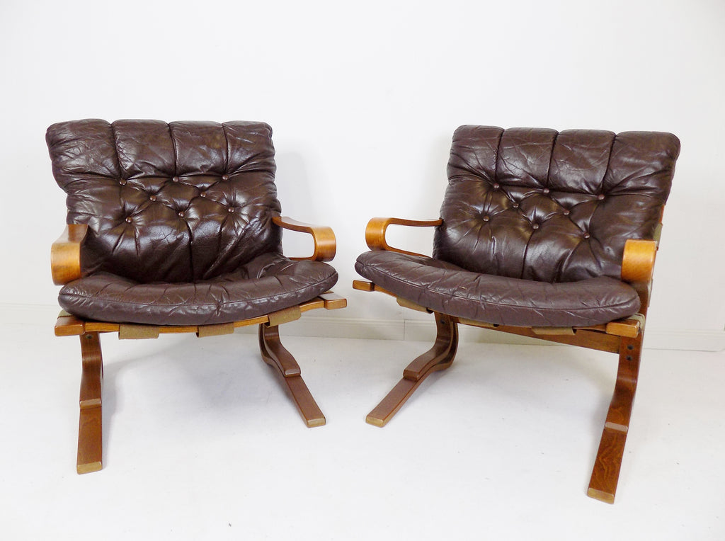 Set of 2 Skyline leather armchairs by Einar Hove for Hove Moebler
