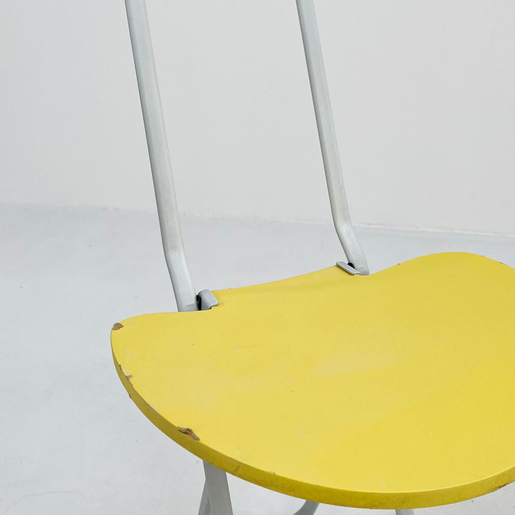 디자인 기간 - 70년대 치수 - 폭 36 cm x 깊이 44 cm x 높이 82 cm x 좌석 높이 48 cm 재료 - 금속, 목재 색상 - 노란색, 밝은 회색 연령에 따른 가벼운 착용 그리고 사용. 특히 좌석 가장자리에 약간의 흠집이 있습니다. 세부 정보 사진을 참조하십시오.