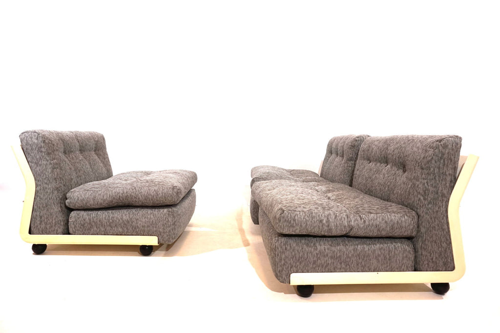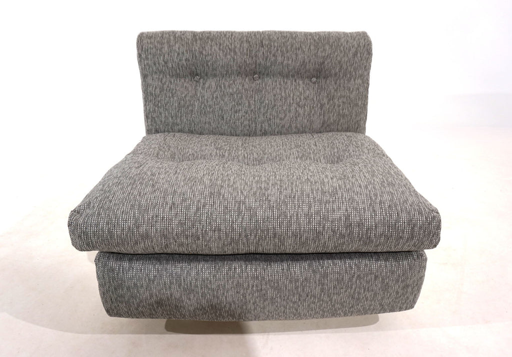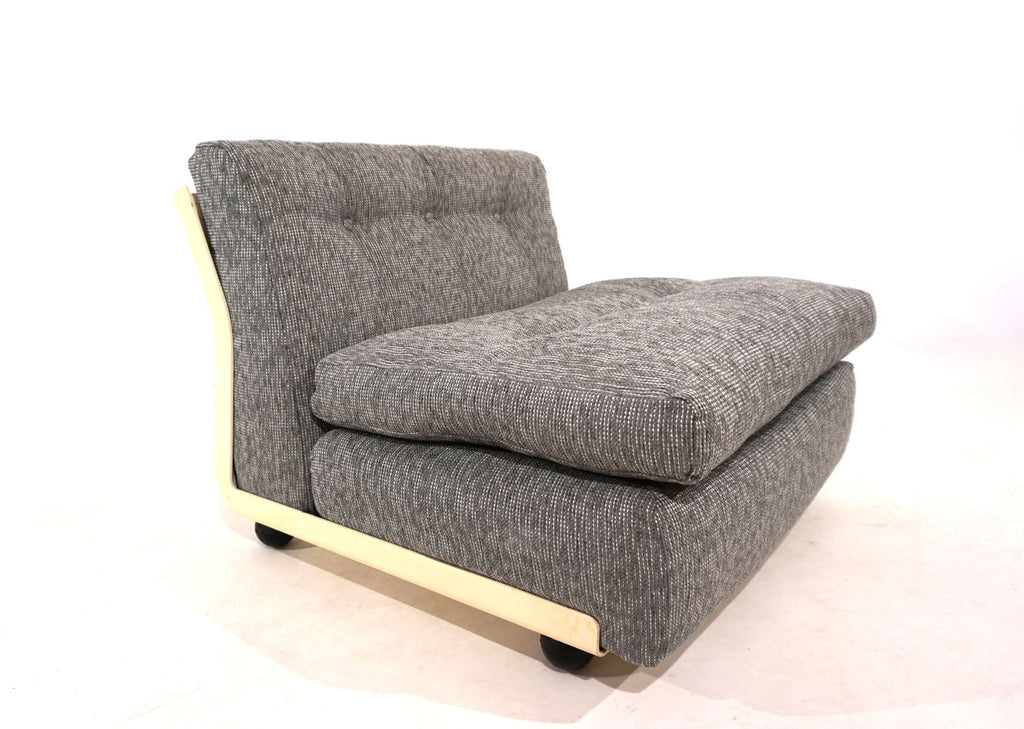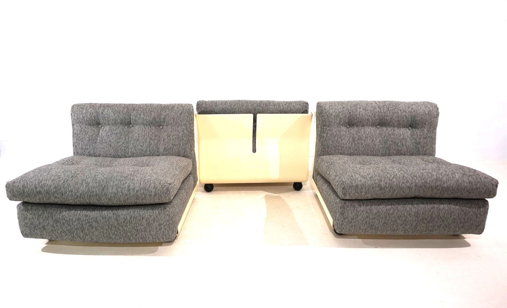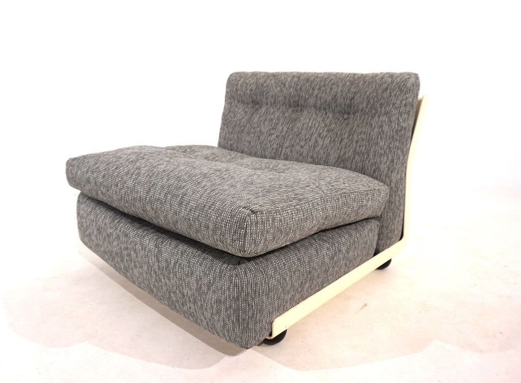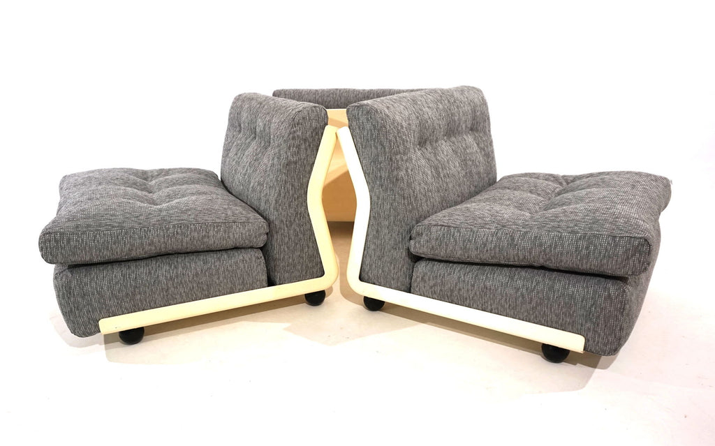 가벼운 유리섬유 쉘과 고품질 플래티넘/실버 부클 패브릭 소재의 Amanta 모듈형 안락의자 3개 세트입니다. 안락의자는 새롭게 덮개를 씌우고 덮었으며 일류의 좌석 편안함을 제공합니다. 후면 쉘에는 최소한의 마모 흔적과 약간의 변색만 나타납니다. 상태가 매우 좋은 Amanta 세트입니다. 세 가지 요소는 3인용 또는 2인용 소파로 개별적으로 설치하거나 개별적으로 설정할 수 있습니다. 이탈리아 제조업체인 C&B Italia는 Cesare Cassina와 Piero Busnelli가 설립했으며 1973년 Busnelli가 완전히 인수했습니다. 당시 회사 이름은 B&B Italia로 변경되었습니다. Amanta 안락의자는 1963년 Mario Bellini가 C&B Italia를 위해 디자인한 것으로 그의 가장 유명한 디자인 중 하나입니다.