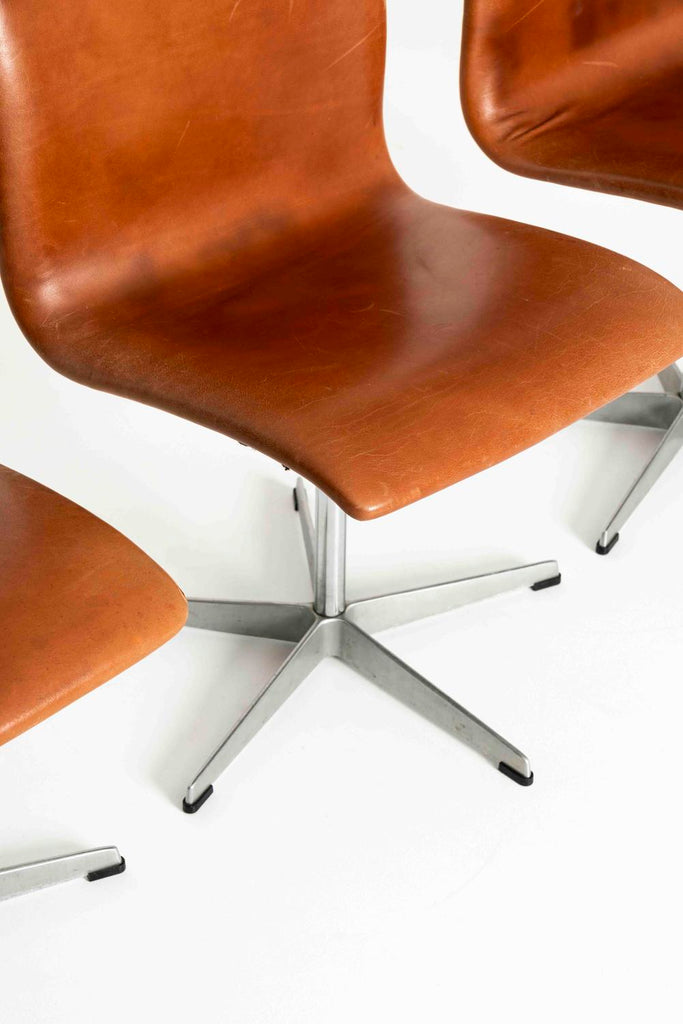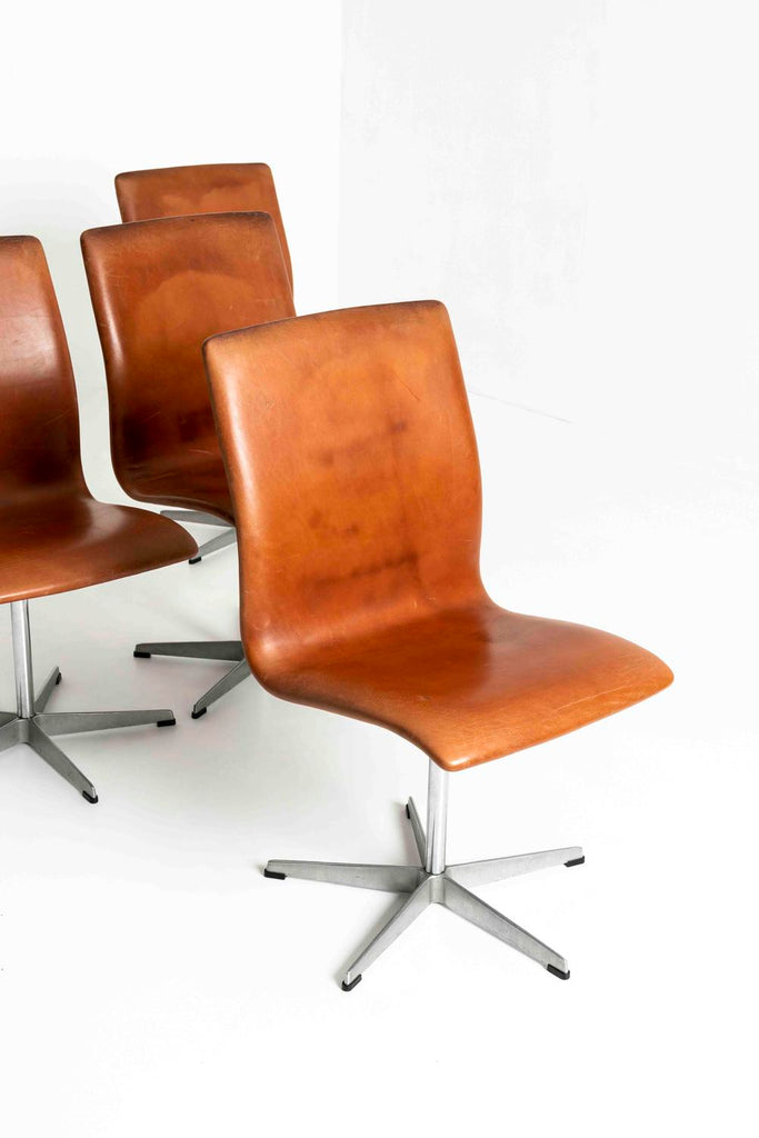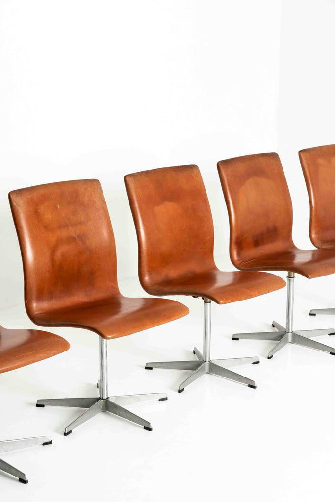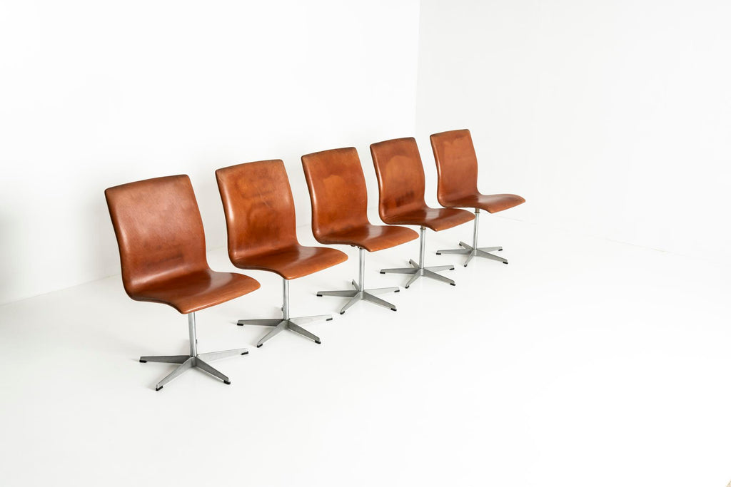 Set of Five Oxford Swivel Chairs in Brown Leather by Arne Jacobsen, design 1965 Denmark