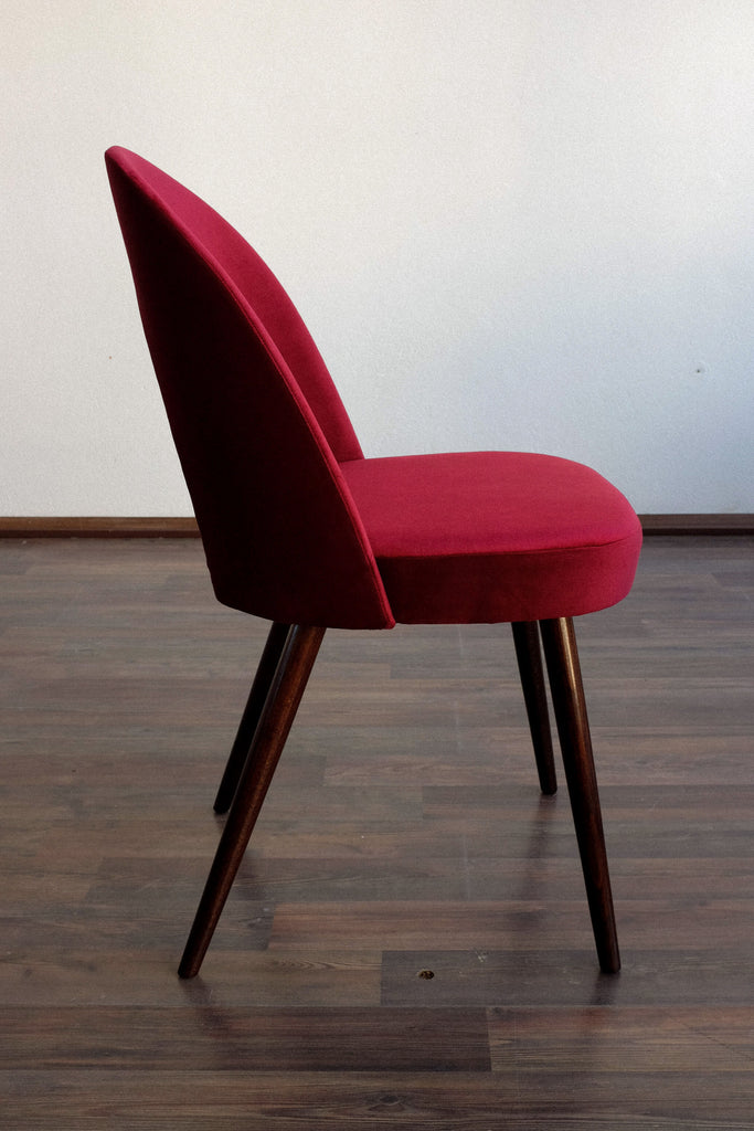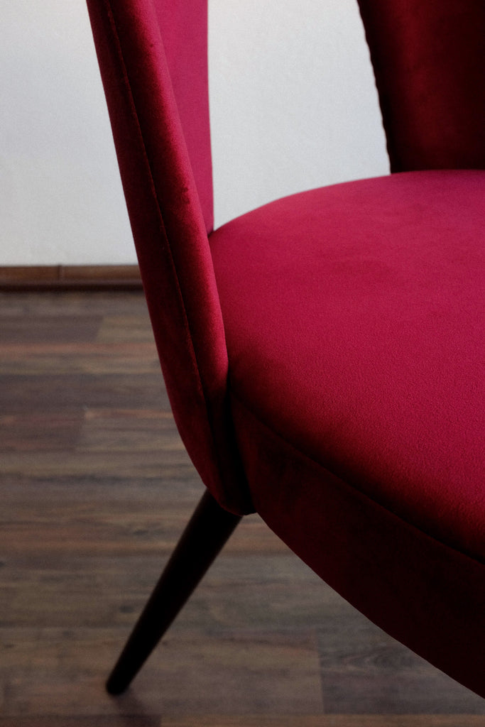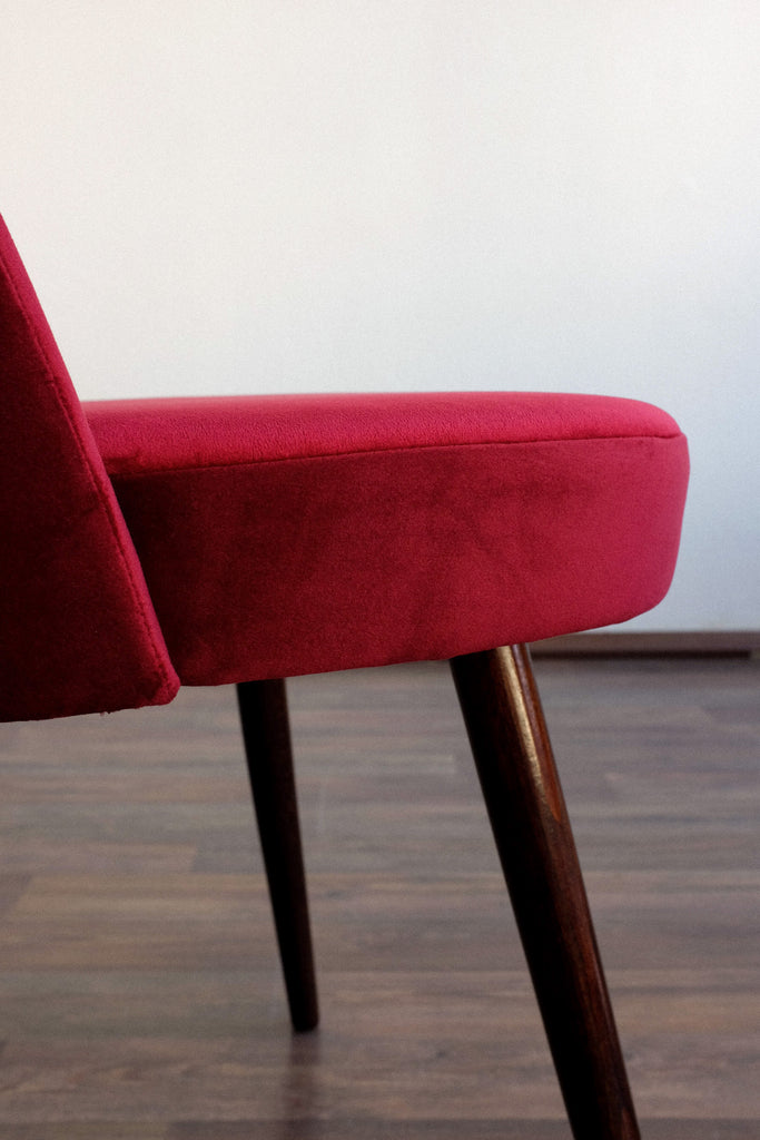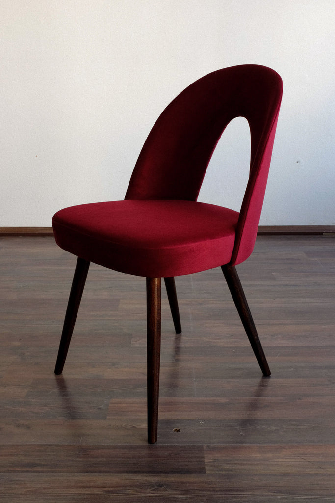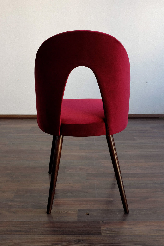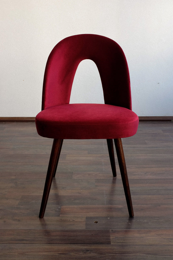 나무는 복원되었고 의자는 Rioma Spain에서 버건디 벨벳으로 다시 덮개를 씌웠습니다.
