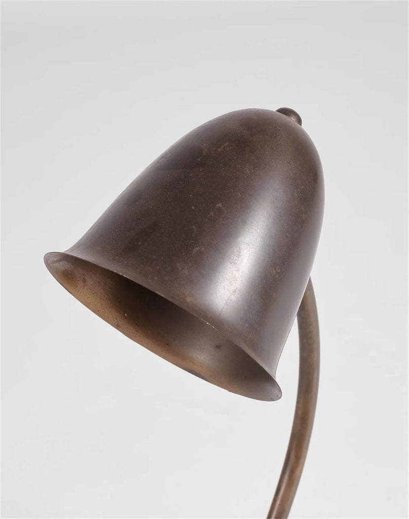 WH Gispen의 아르데코 테이블 램프는 Koninklijke Metaalwarenfabriek Daalderop를 위해 1928년부터 'Duikelaar'라고 불렸습니다. 램프는 황동으로 만들어졌으며 아름다운 녹청을 가지고 있습니다. 베이스는 링의 다양한 위치에 배치될 수 있습니다. 사진에서 볼 수 있듯이 베이스에 작지만 크게 눈에 띄지 않는 움푹 들어간 곳이 있습니다.